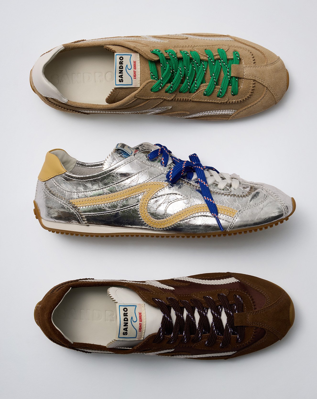 DÉCOUVREZ LA LIGHT WAVE, INSPIRÉE PAR L’UNIVERS DE LA COLLECTION SS26, ELLE REVISITE LA BASKET VINTAGE DANS UNE VERSION LÉGÈRE ET CONTEMPORAINE. UNE SILHOUETTE RÉTRO AUX LIGNES DYNAMIQUES, DÉCLINÉE DANS LES COLORIS DE LA SAISON, EN CUIR ET EN SUÈDE.
